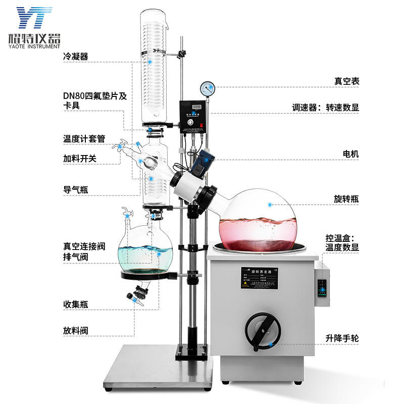 旋转蒸发仪又叫旋转蒸发器,是实验室常用设备,由马达、蒸馏瓶、加热锅、冷凝管等部分组成的,主要用于减压条件下连续蒸馏易挥发性溶剂,应用于生物医药、化工、化学等领域。使用旋转蒸发仪应该注意: