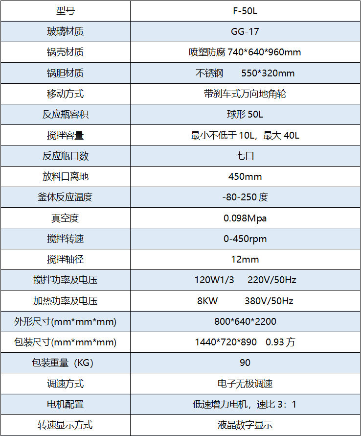 • 聚四氟乙烯放料阀,可活动接口,出料彻底快捷。