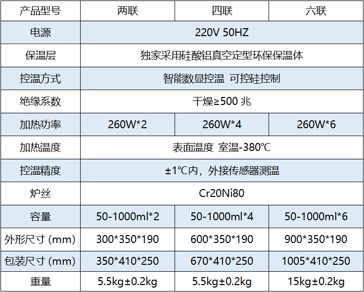 外壳铁皮静电喷塑,既美观又防腐蚀。由于采用球形加热,可使容器受热面积达到百分之六十五以上,具有升温快,温度高、操作简便、经久耐用的特点。多联同时加热,也可单独操作,自带烧瓶夹固定架。